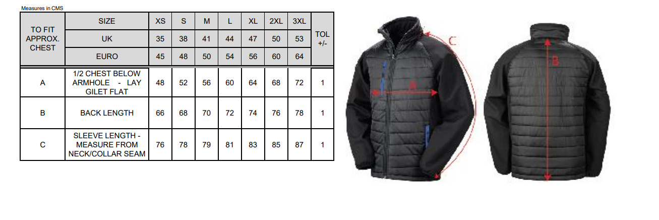 On-trend padded plus softshell combination. Supersoft, lightweight and warm. Printable softshell sleeves. Ready to brand. Quiet to wear. Contrast colour pocket zips. Full front zip with chin guard. Stand-up padded collar. Padded body. Soft bound cuff. Black zip pulls. Hangtag. Oeko-Tex certified.