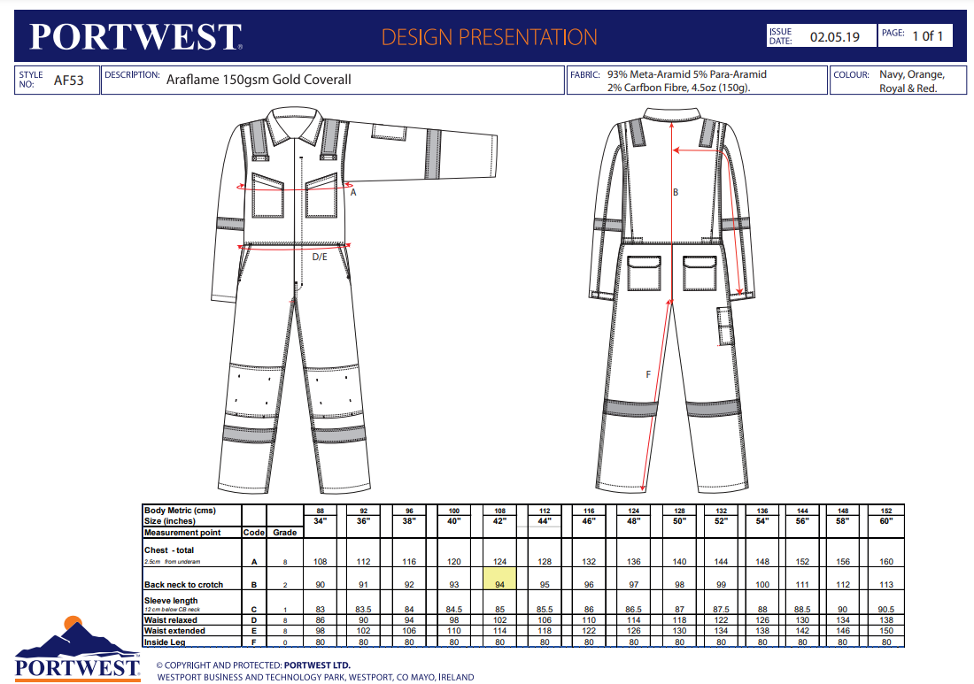 Datasheet - https://documents.portwest.com/datasheet.php?style=AF53&lang=GB&itemcol=AF53NAR&facility=902