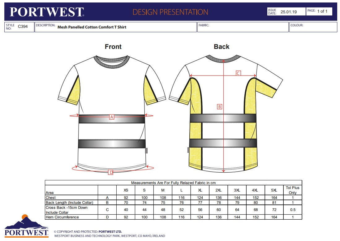 Portwest C394 Hi-Vis Cotton Comfort Mesh Insert T-Shirt S/S C394