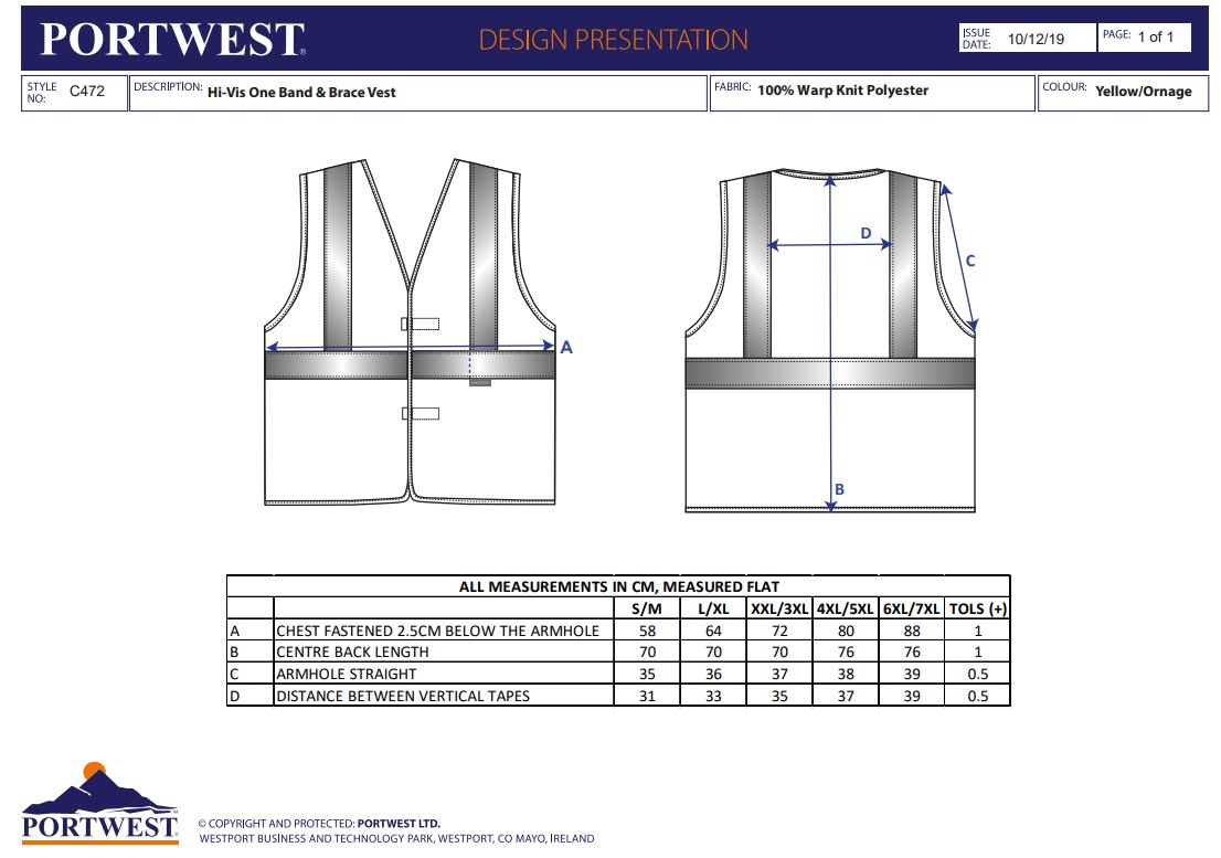 Portwest C472 Hi-Vis Band and Brace Vest C472