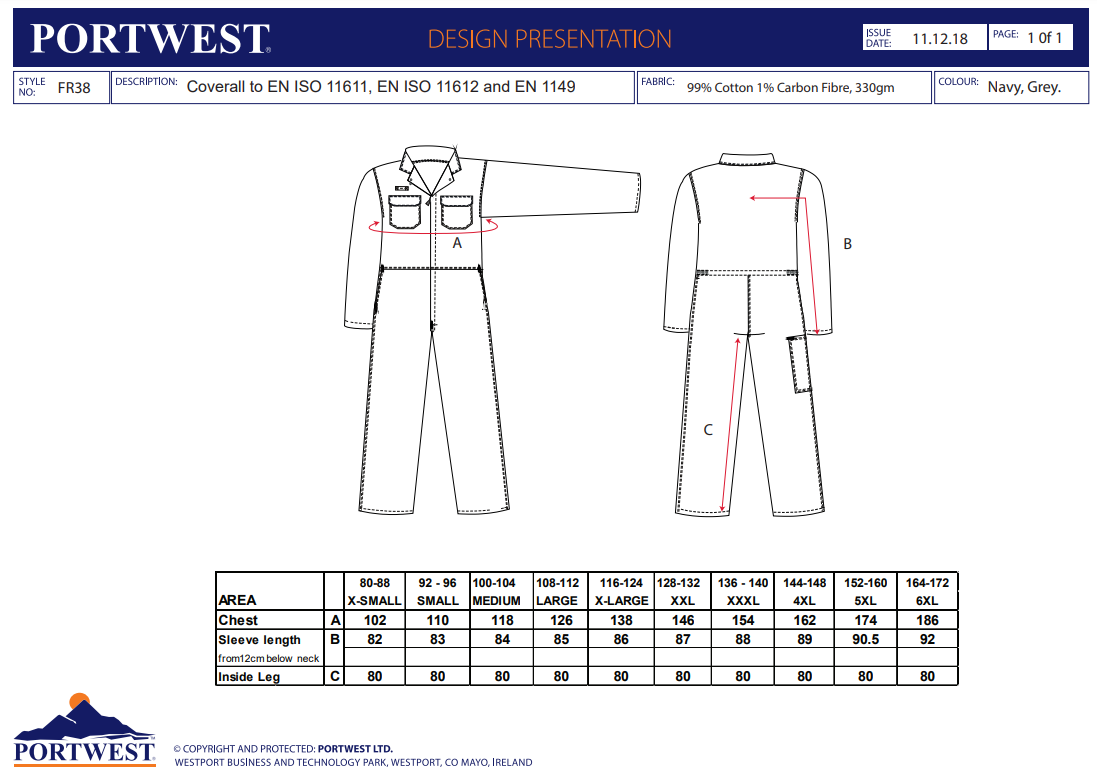 Datasheet - https://documents.portwest.com/datasheet.php?style=FR38&lang=GB&itemcol=FR38NAR&facility=902