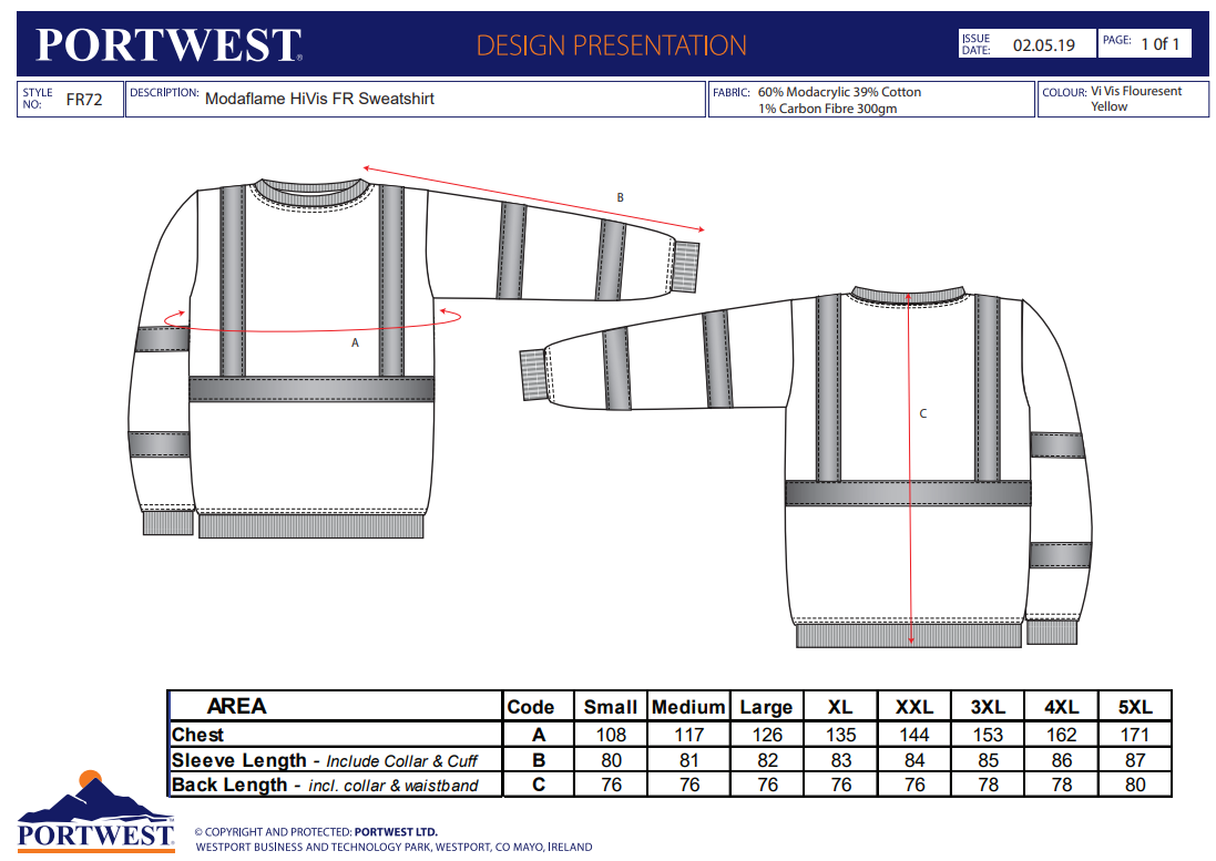Datasheet - https://documents.portwest.com/datasheet.php?style=FR72&lang=GB&itemcol=FR72YER&facility=902