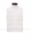 Men’s quilted vest, 8 mm plastic zip with metal pull, side vents with button, five outer pockets, two with LOCK SYSTEM. Padded, corduroy rib inside collar, one inner pocket.