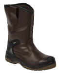 Brown leather waterproof safety rigger. Padded ankle area and TPU heel guard for stability. Steel toe cap and steel midsole protection. Waterproof and breathable inner lining. Dual density polyurethane outsole with anti-scuff toe guard. Anti-static. A good all round waterproof safety boot for a wide range of outdoor applications.